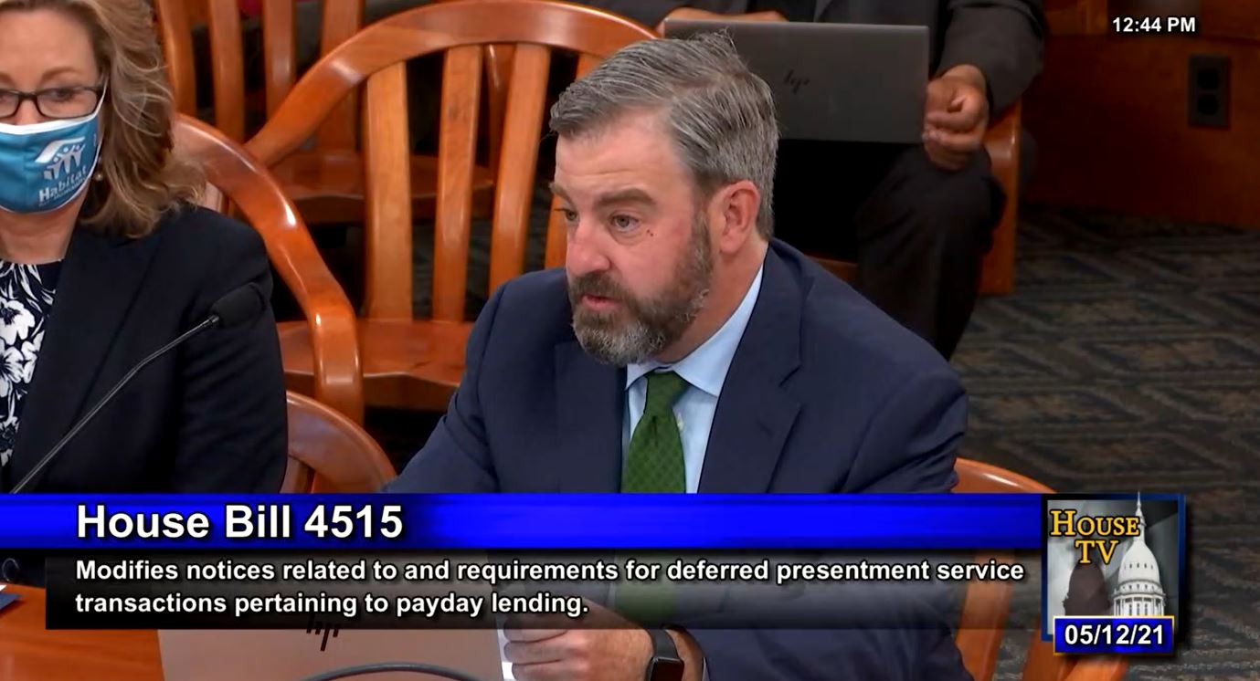 On Wednesday, May 12, Michigan Catholic Conference testified alongside Habitat for Humanity of Michigan in the House Financial Services Committee, speaking to the need for legislation that protects individuals who are seeking high-risk, short-term loans (known as payday loans). More specifically, House Bill 4515 would establish a 30-day cooling-off period for those who take out payday loans and institute "ability to repay" considerations. Such provisions would help protect those struggling with financial hardship from falling further into debt. Staff also supported House Bill 4828, which would require the Department of Insurance and Financial Services to submit yearly reports on payday loans, collecting data such as who uses them, how often, fee amounts, and more. The reports would be required for 7 years and would both be sent to the Michigan Legislature and posted on the Department's website. Both bills, which are sponsored by Representatives William Sowerby (D-Clinton Twp.) and Cara Clemente (D-Lincoln Park), await further consideration in the House Financial Services Committee.