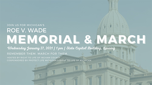 - For those who feel comfortable and are able to join, the Michigan March for Life will be held at 1:00 pm on Wednesday, January 27 at the State Capitol. Most Reverend Earl Boyea, the Bishop of the Diocese of Lansing, invites Michigan Catholics and people of goodwill to attend. Those who are not able to attend in-person can pray for the Michigan March for Life's intentions.